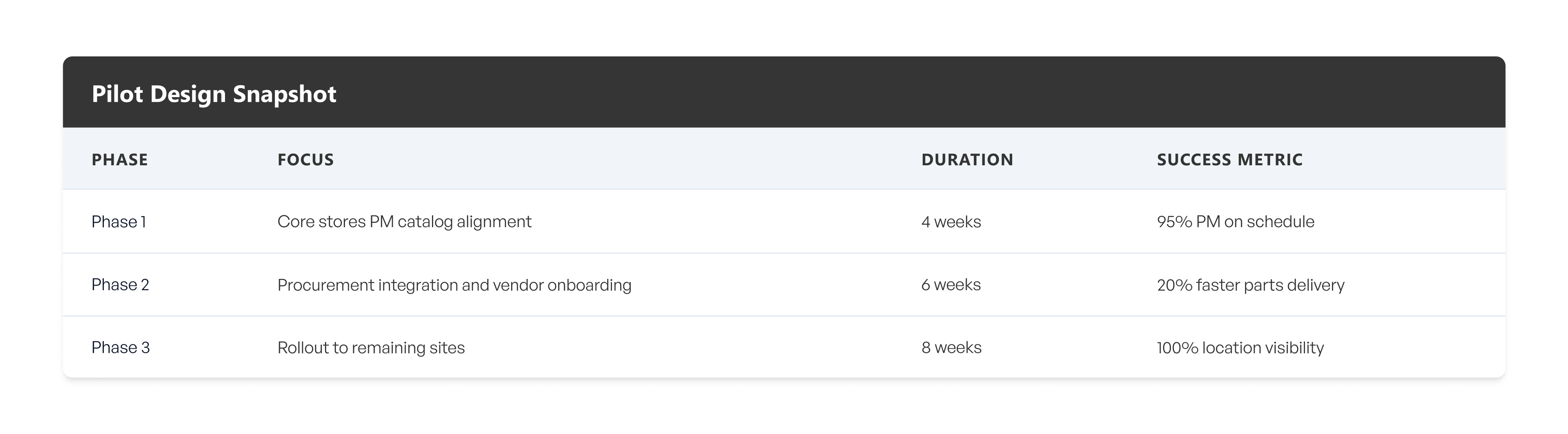 Phase 1: Core locations with the highest asset density and downtime risk
